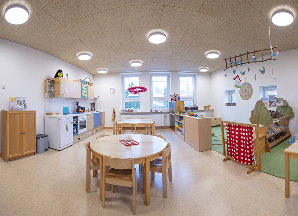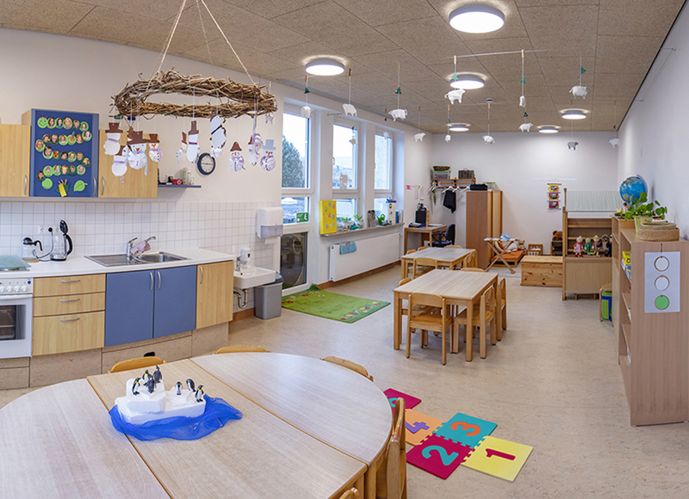 Das großzügige Raumkonzept bietet für die Kinder jede Menge Bewegungs- und Entfaltungsmöglichkeiten. Für die beiden Gruppen gibt es weitere Räumlichkeiten für die verschiedensten Bedürfnisse und Aktivitäten.